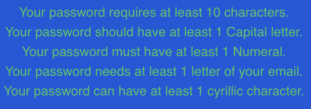역설적이게도 위와 같은 형태로 '키릴 문자를 넣어야 한다', '대문자를 넣어야 한다'와 같은 패턴을 제시하는 것은 패스워드를 더 복잡하게 만들게 할 거 같지만 이런 형태의 암호는 사용자가 생소한 복잡한 암호패턴을 기억하기 쉽게 하려고 단순한 형태를 만들어 내기 때문에 해킹의 위험을 낮추는 거에 별로 효과적이지 않다.