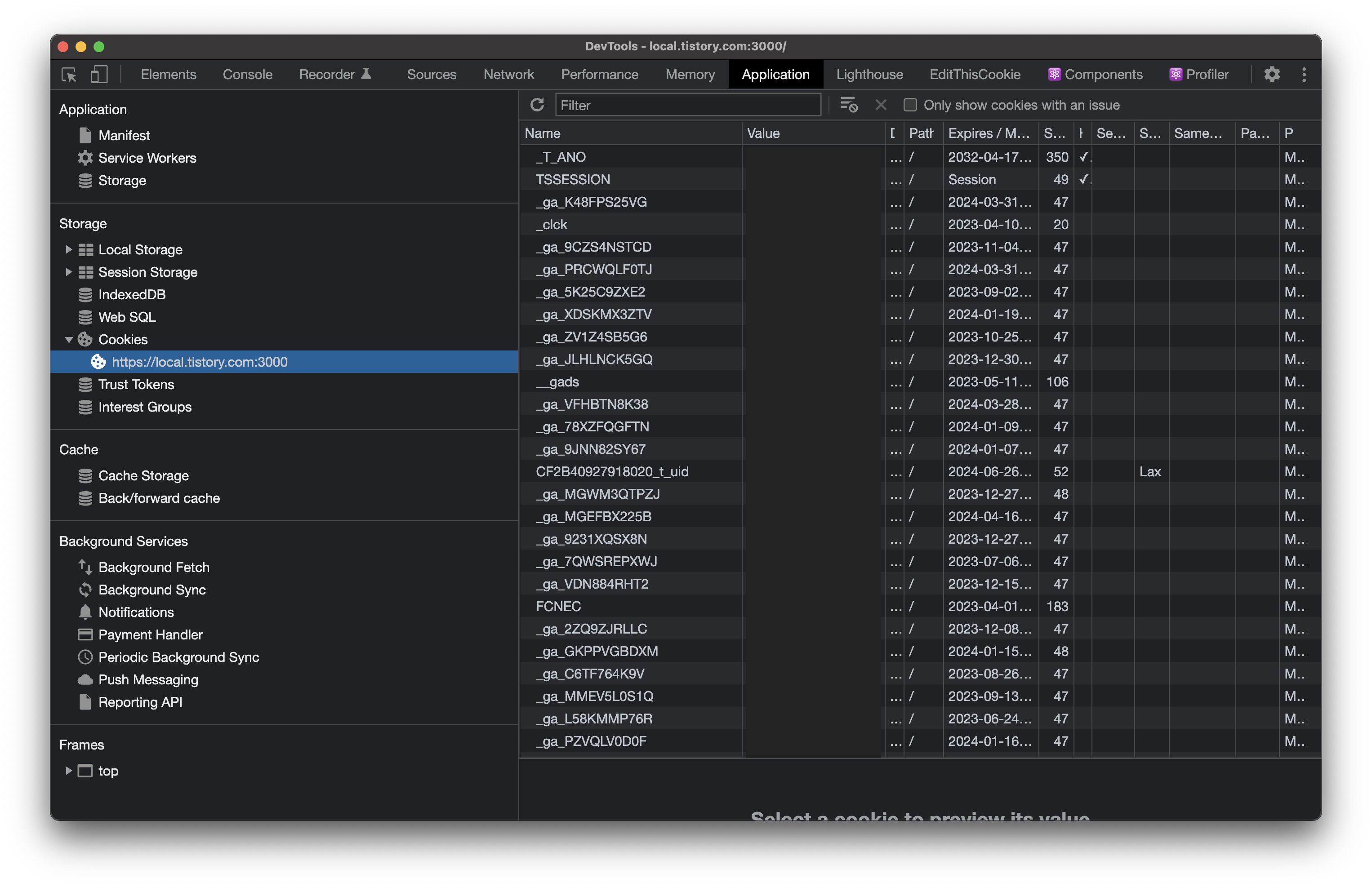 이렇게 해서 우리는 로컬 페이지에서. tistory.com의 쿠키를 전부 액세스 할 수 있게 구성을 했고, XMLHttpRequest.withCredentials옵션을 사용해서 서버로 요청하게 된다면 동일한 인증을 가져갈 수 있다.